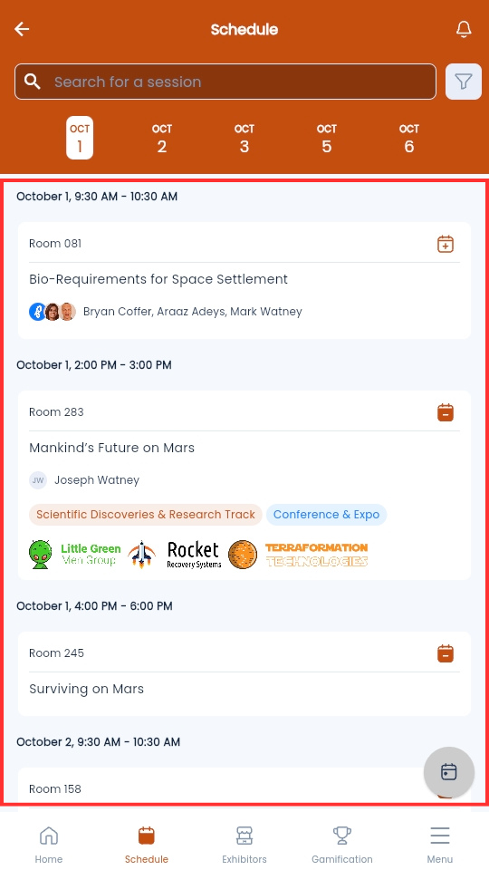- From the Event App homepage, select Schedule