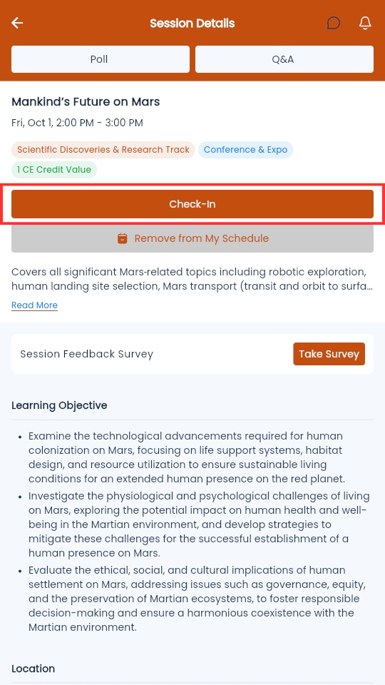 On the session page, select Check-In