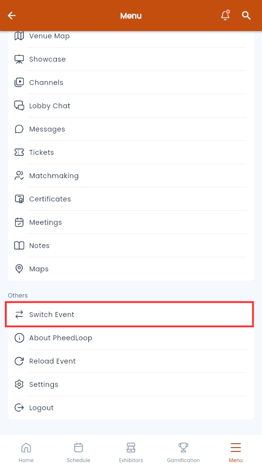 Attendees who are part of multiple events can switch between them in the Event App.